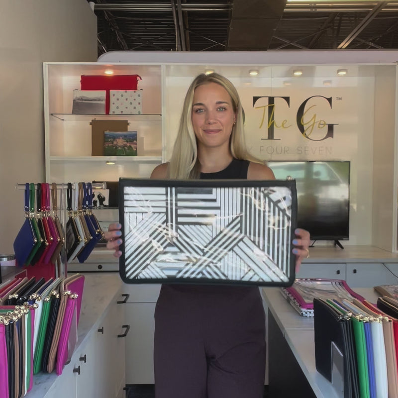 Size #10 Nudie Black transforms from practical packing essential to stylish see-through clutch—something you'll never get from boring packing cubes that stay in your room. Roll your clothes really tightly, pack them in the Size #10, then unpack when you reach your destination and use it as an oversized clear clutch to the gym or pool on vacation.
