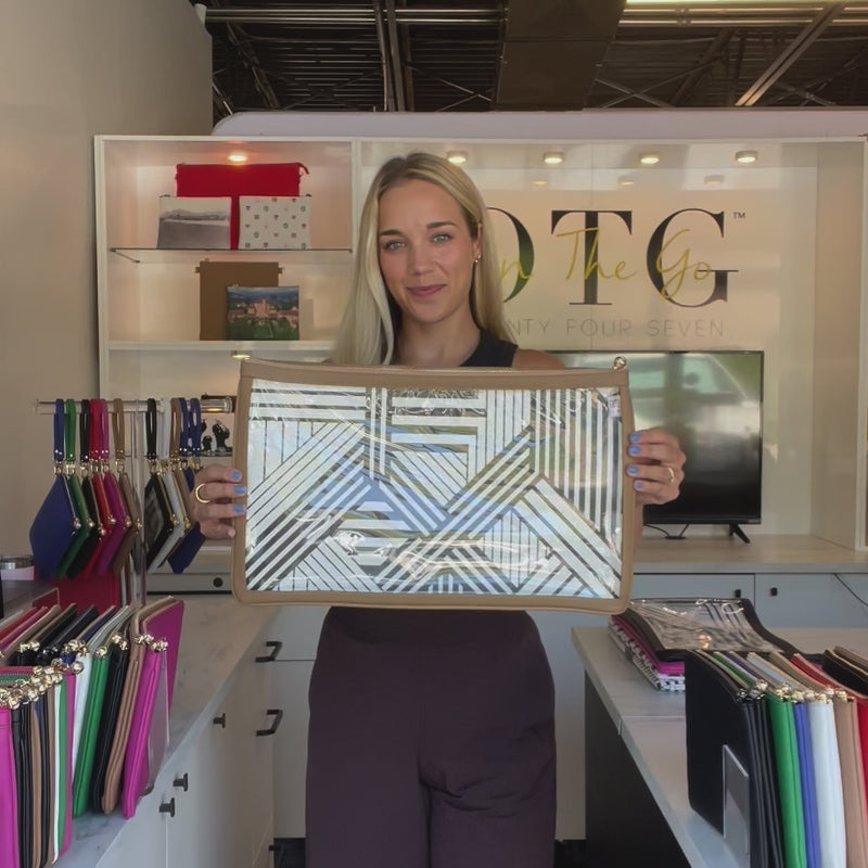 Size #10 Nudie Tan transforms from practical packing essential to stylish see-through clutch—something you'll never get from boring packing cubes that stay in your room. Roll your clothes really tightly, pack them in the Size #10, then unpack when you reach your destination and use it as an oversized clear clutch to the gym or pool on vacation.