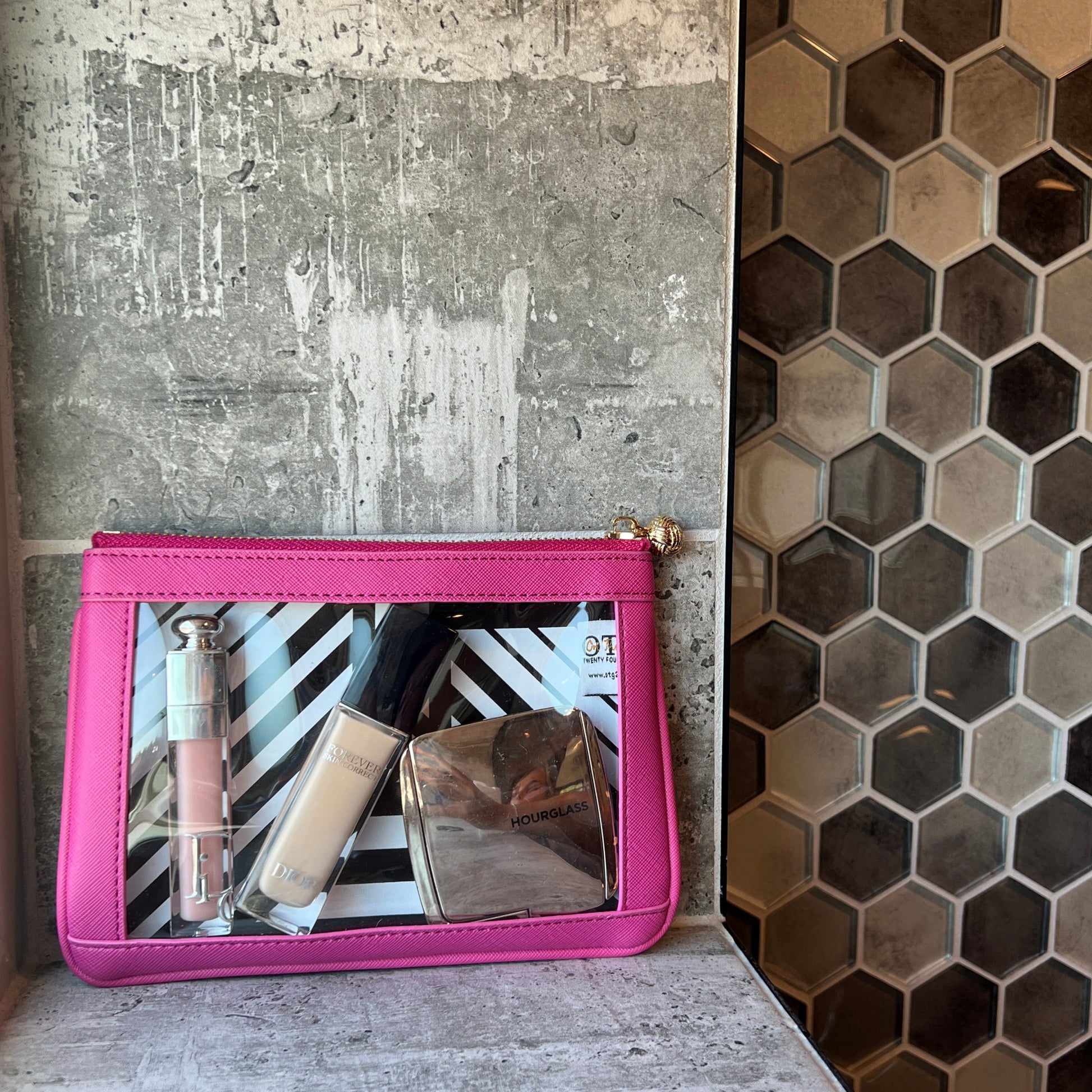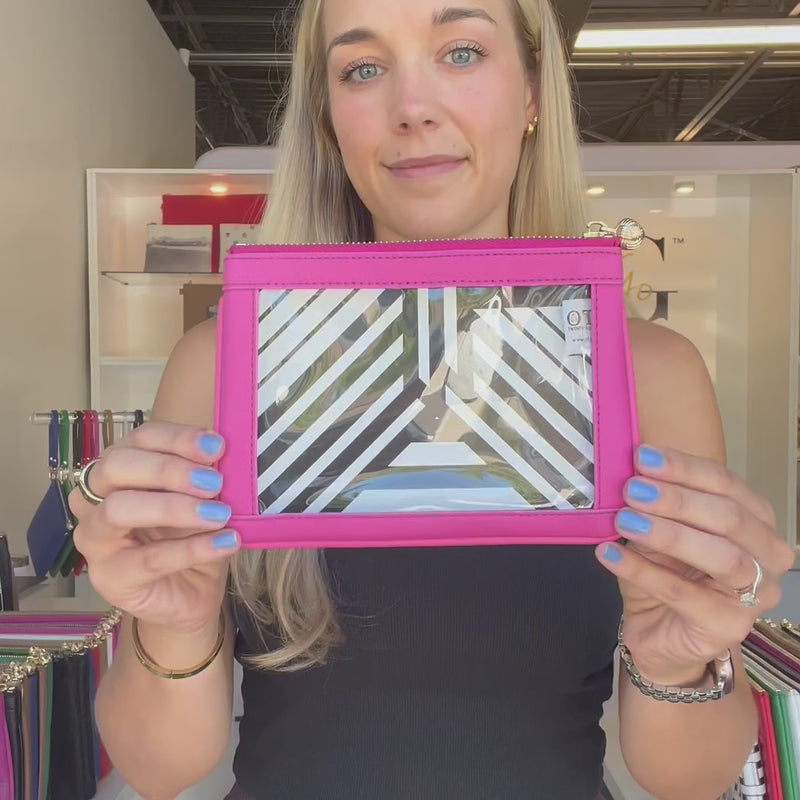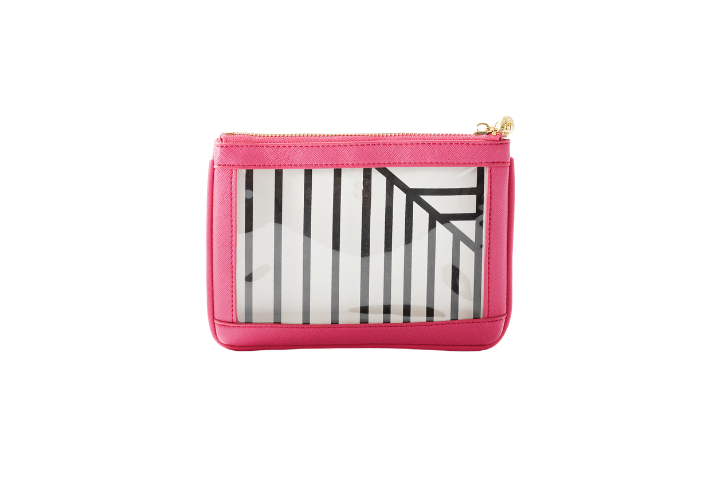Size #2 Nudie Hot Pink is the ideal solution for keeping your bag clutter-free and organized. This sleek pouch with clear window discreetly holds beauty essentials, receipts, cards, and all those random finds that usually get lost in your handbag.