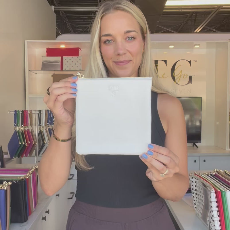 Size #3 White is the ideal solution for keeping your larger bag clutter-free and organized. This versatile pouch stores personal items, beauty essentials, receipts, and all those random finds that usually get lost in your handbag.