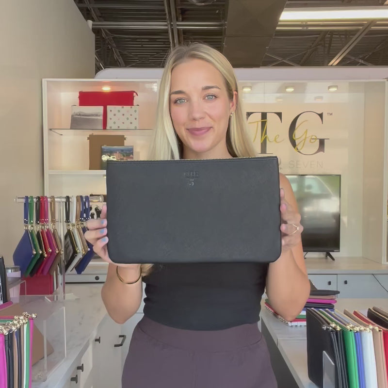 Size #5 Black is the perfect versatile accessory for keeping your essentials easy to access while making a chic fashion statement. This spacious pouch seamlessly transitions from organization to style.