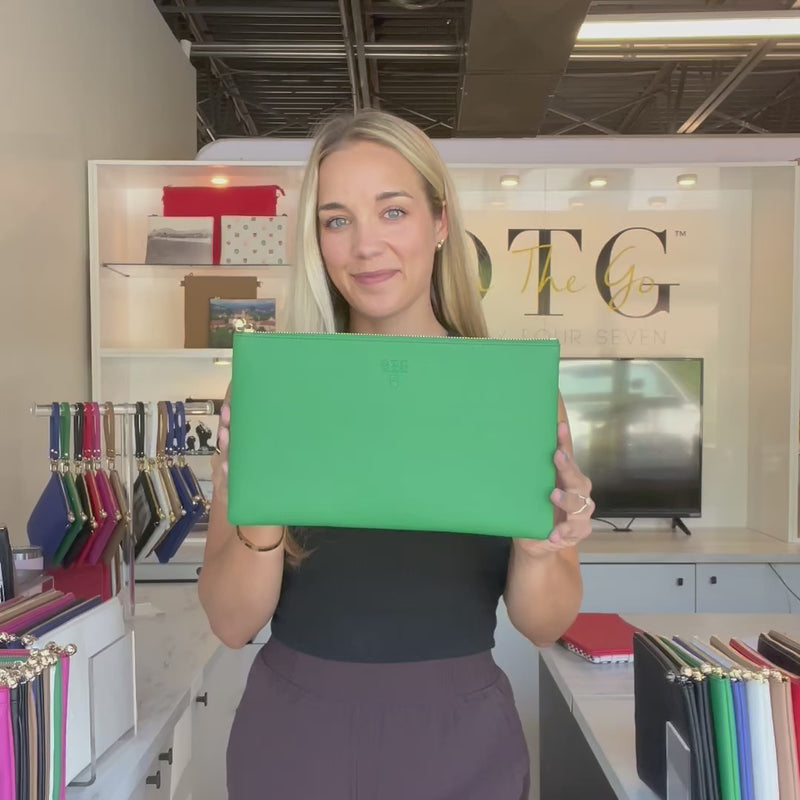 Size #5 Green is the perfect versatile accessory for keeping your essentials easy to access while making a chic fashion statement. This spacious pouch seamlessly transitions from organization to style.