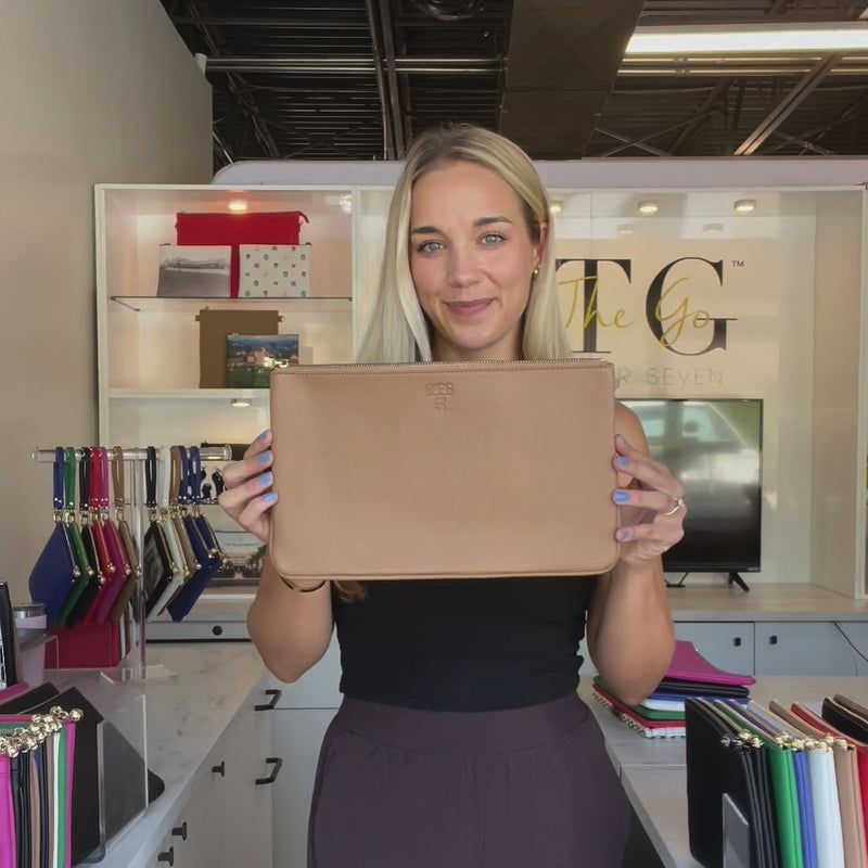 Size #5 Nudie Tan is the perfect versatile accessory for keeping your essentials easy to access while making a chic fashion statement.
