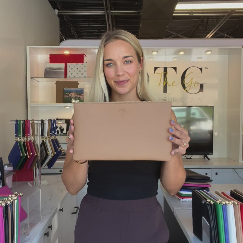 Size #5 Tan is the perfect versatile accessory for keeping your essentials easy to access while making a chic fashion statement. This spacious pouch seamlessly transitions from organization to style.