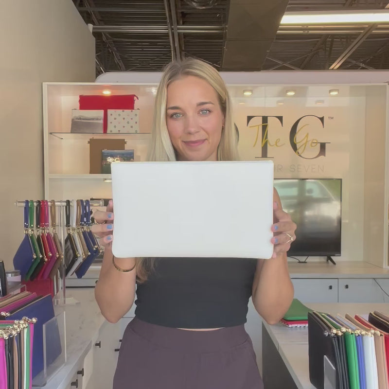 Size #5 White is the perfect versatile accessory for keeping your essentials easy to access while making a chic fashion statement. This spacious pouch seamlessly transitions from organization to style.