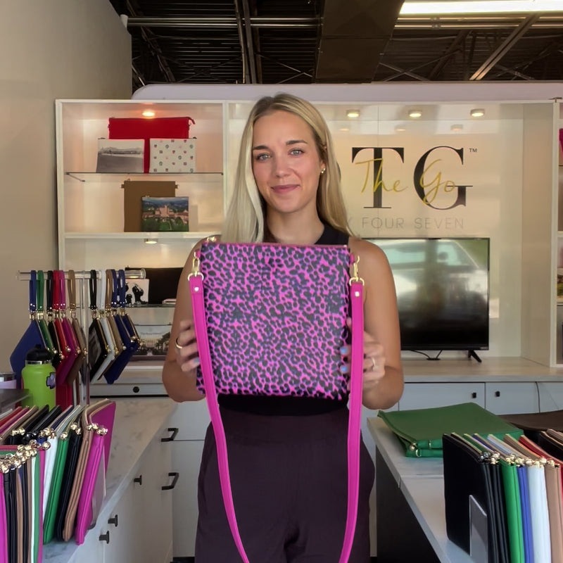 Size #6 Cece Cheetah is the perfect versatile bag that transitions from tote organizer to crossbody in seconds. This chic and practical bag comes with a 48" removable crossbody strap, allowing you to grab it from your tote, add the strap, and wear crossbody style to suit your needs.