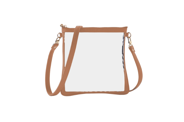 Size #6 Double Nudie Tan is the perfect versatile bag that transitions from tote organizer to crossbody in seconds. This security approved for events bag with clear window comes with a 48" removable crossbody strap, allowing you to grab it from your tote, add the strap, and wear crossbody style to suit your needs.