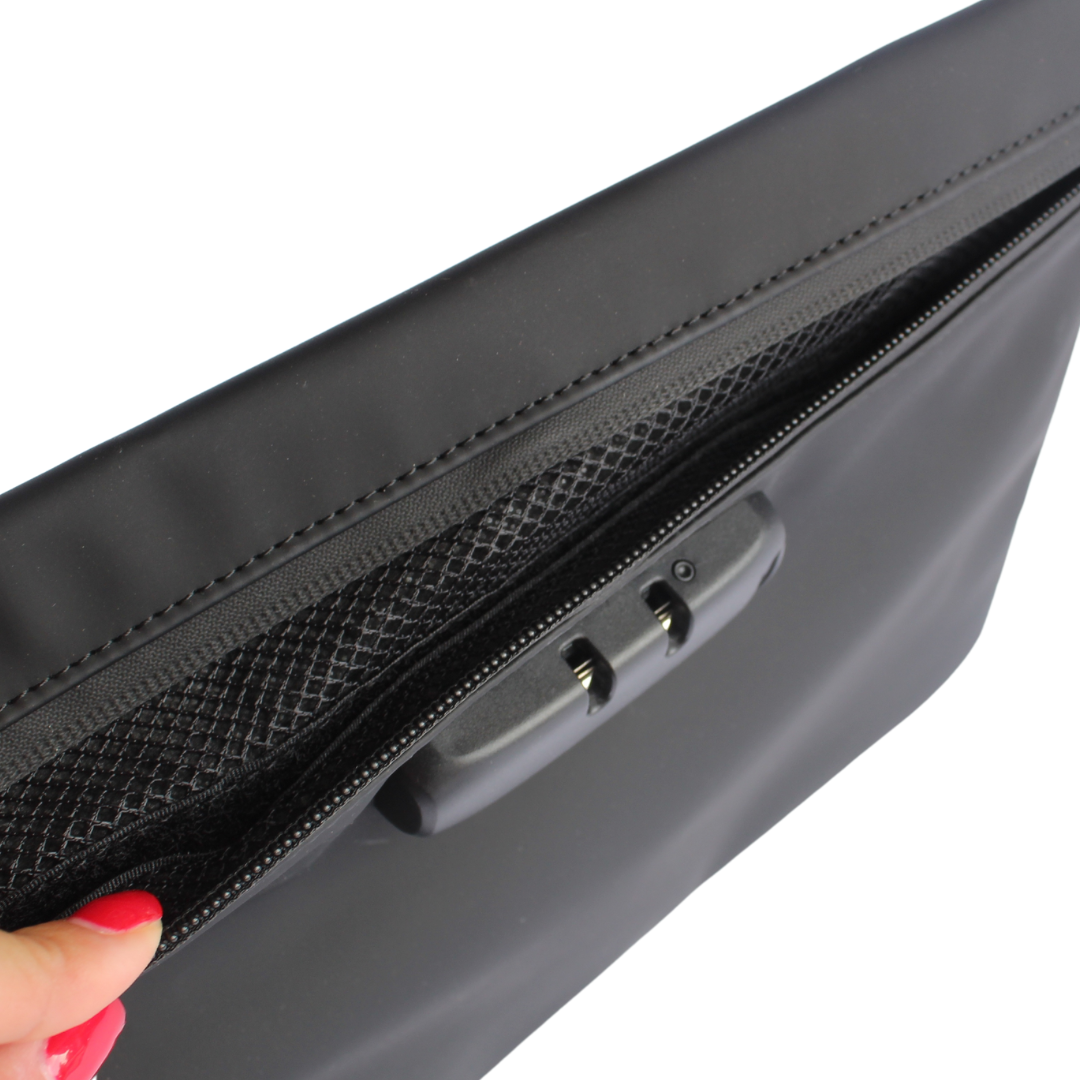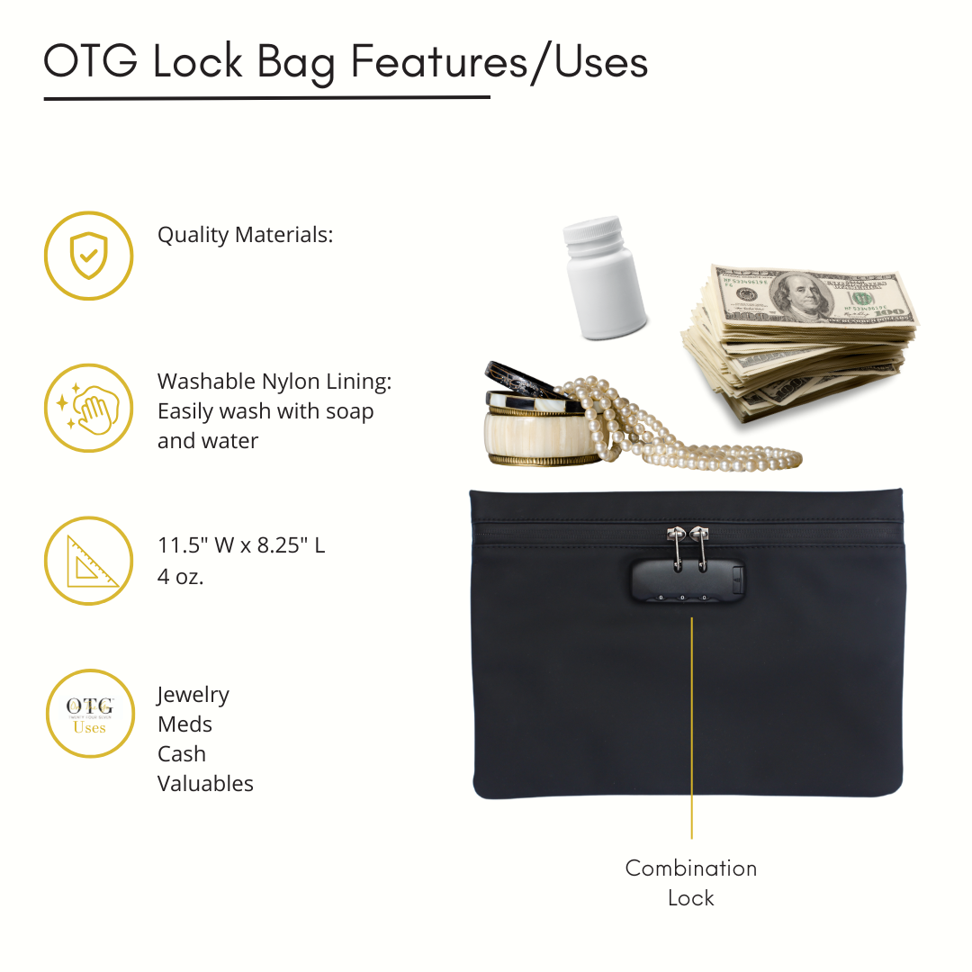 Keep your valuables protected and organized while on the move with this thoughtfully designed security pouch. The durable exterior features a reliable combination lock and velcro-secured inner pocket providing peace of mind. Perfect for securing medications, jewelry and travel documents